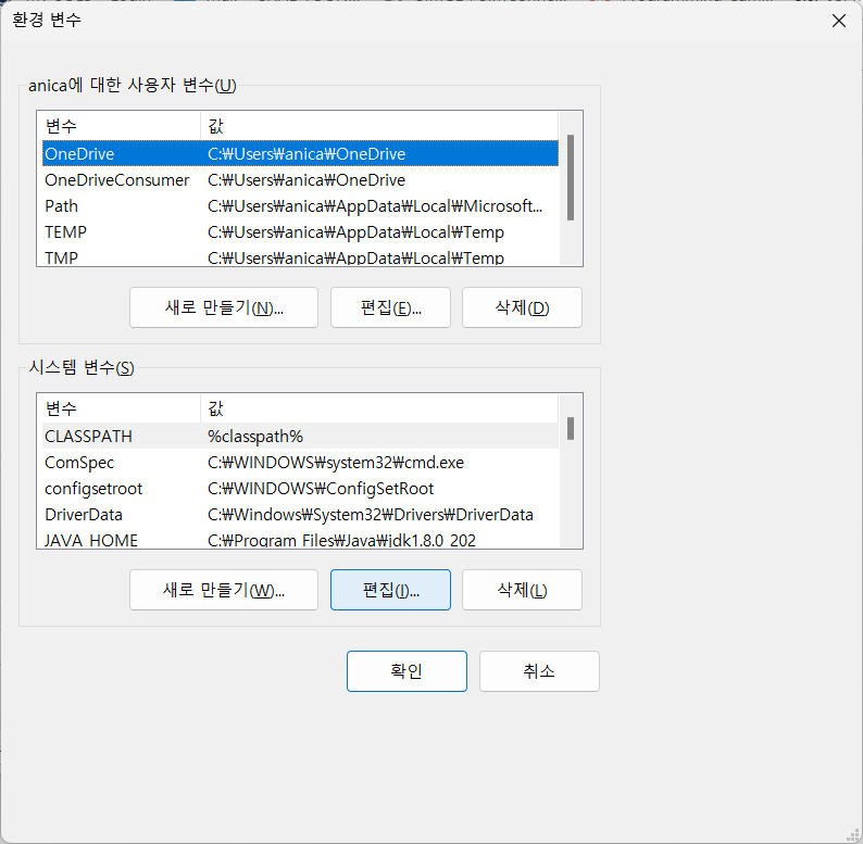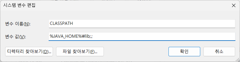 [해결] CLASSPATH 변수 값에 %JAVA_HOME%\lib;.; 으로 수정