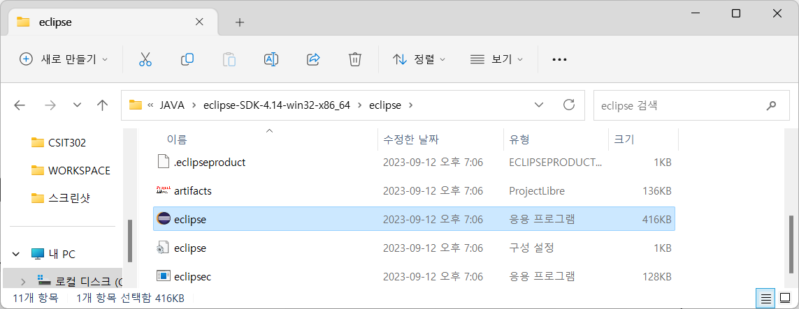 5. 압축해제된 폴더 안에있는 이클립스 실행